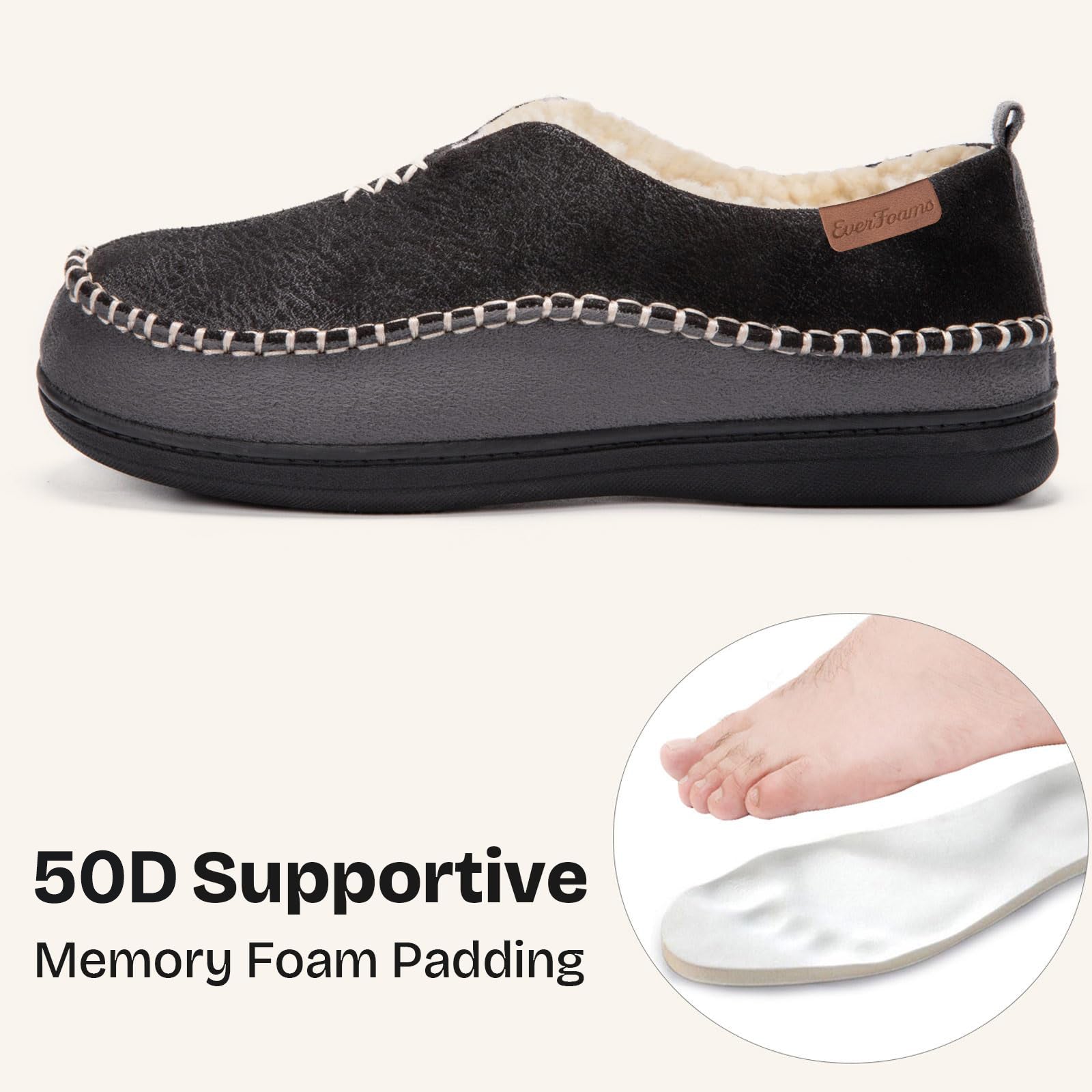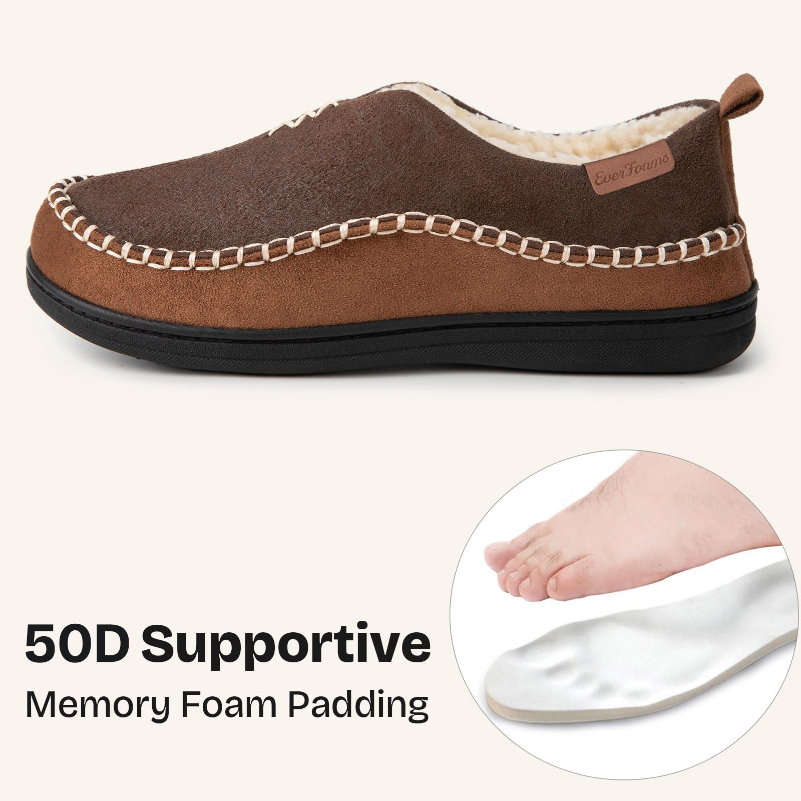 CUSHIONED INSOLE: Supportive EVA foam added 50D high-density memory foam, these warm moccasin house shoes will give your feet extra comfort